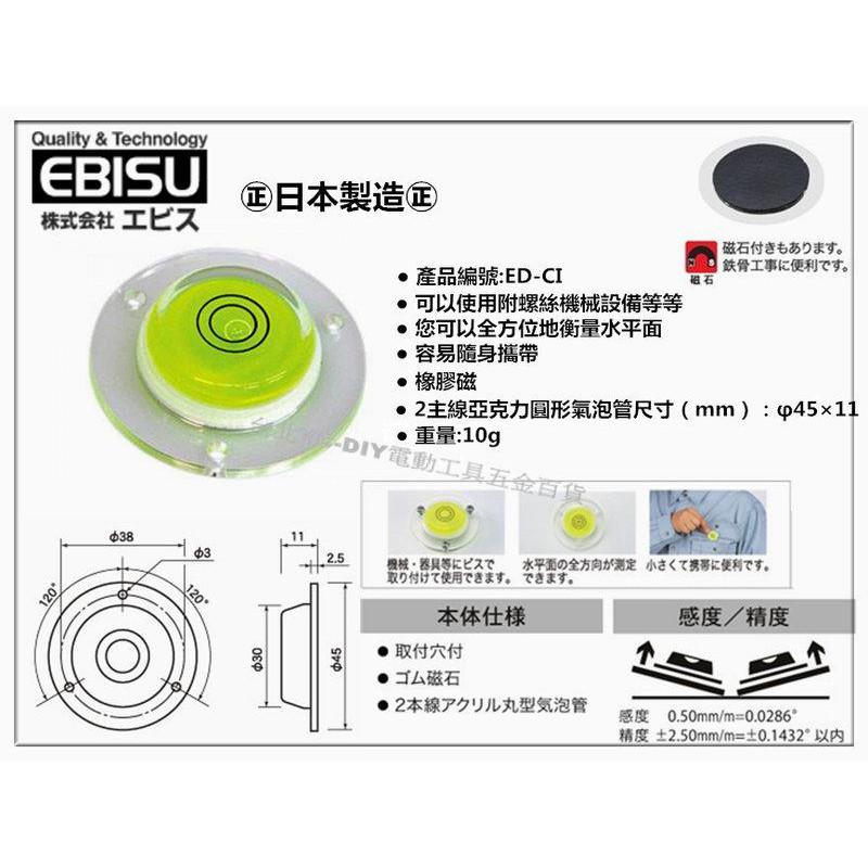 【台北益昌】㊣日本製㊣ EBISU 惠比壽 ED-CI 丸型水平器 不附磁 精密水平尺