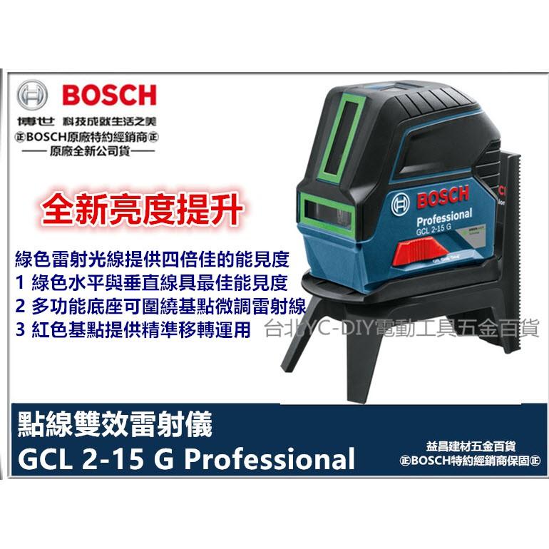 【台北益昌】綠光 雷射墨線 2點雷射 2用機 BOSCH GCL 2-15G 點線雙效雷射儀 墨線儀