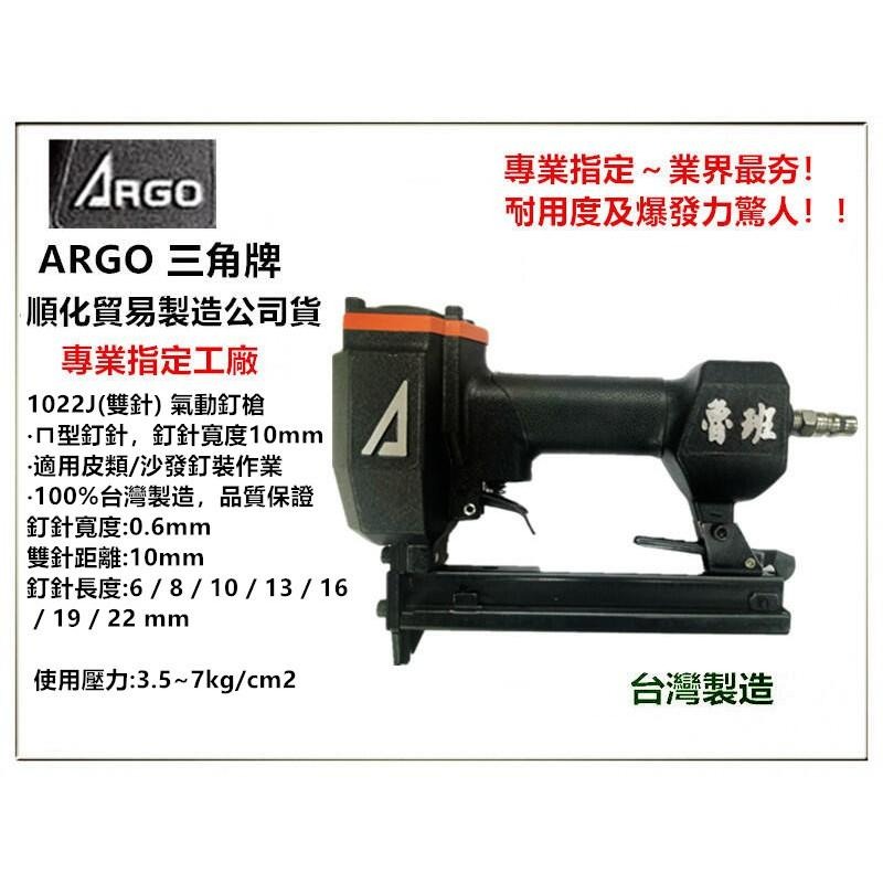 【台北益昌】台灣木工界最夯 正廠ARGO 三角牌 1022J (雙針) 氣動釘槍 大ㄇ字釘 台灣製造