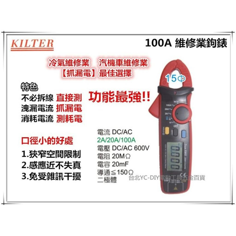 【台北益昌】台灣製造 KILTER 100A 維修業 鉤錶 電錶 測漏電 修車業 冷修業