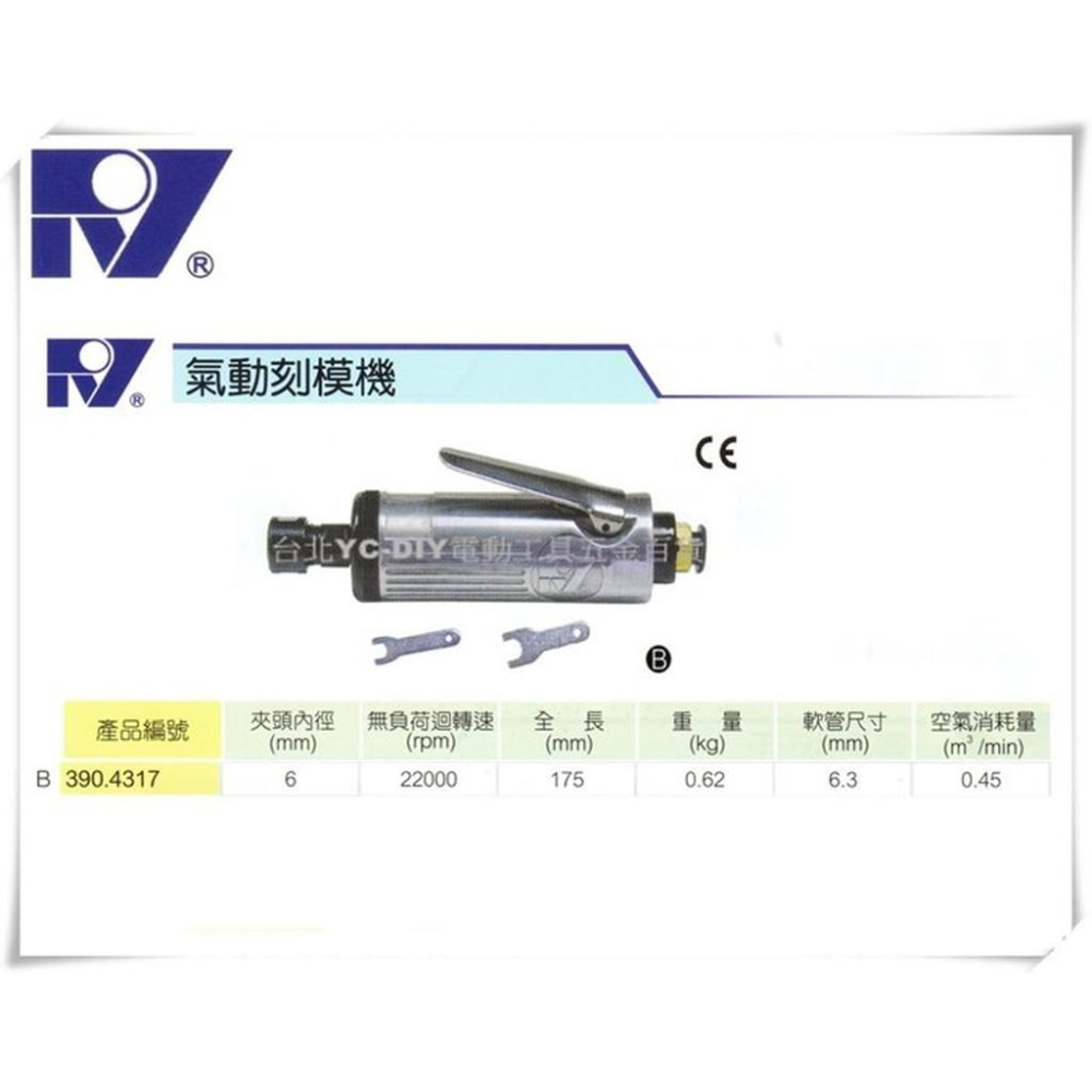 氣動刻磨機 產品編號:390.4317 夾頭內徑(mm):6 無負荷迴轉速(rpm):22000 全長(mm):175 重量(kg):0.62 軟管尺寸(mm):6.3 空氣消耗量(m³ /min):0.45