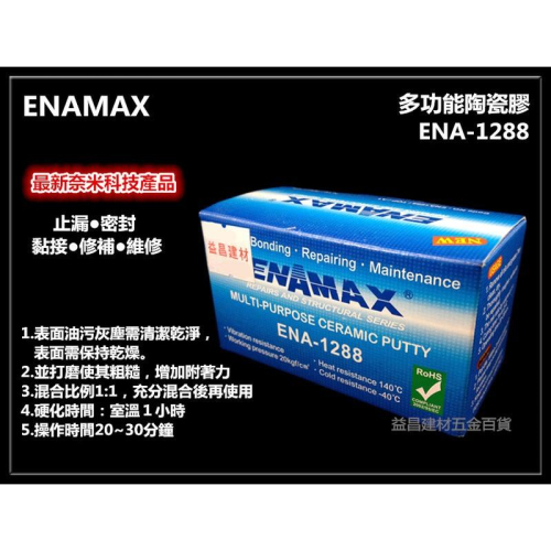 【台北益昌】ENAMAX 多功能陶瓷膠 ENA-1288 止漏 密封 黏接 修補 維修 最新奈米科技產品