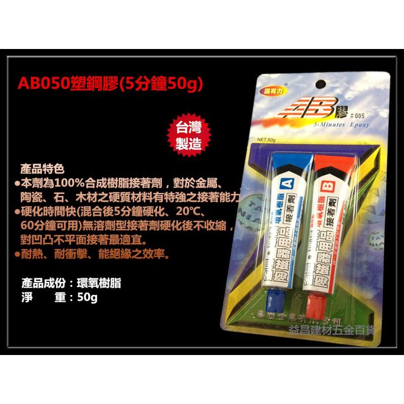 台北益昌 滿有力 50g 黑白 環氧樹脂 AB膠 強力膠 瞬間膠 三秒膠 接著劑 金屬 玻璃 陶磁器 木材 模型 混凝土