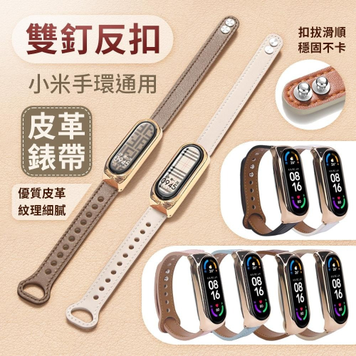 小米手環 8 7 6 5 4 3 雙釘反釦 皮革錶帶 輕盈金屬殼 時尚錶帶 小米錶帶 女士錶帶 通用款 復古 時尚 雙釦