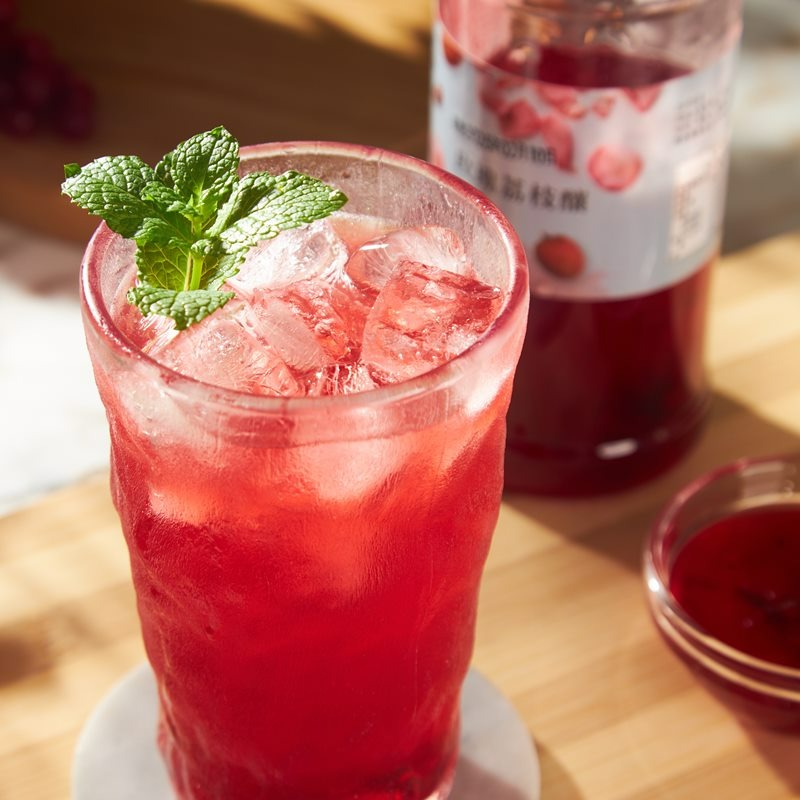 成分:玫瑰花、砂糖、果糖、荔枝濃縮汁、DL-蘋果酸、洛神汁、檸檬酸、水、玉米糖膠、香料、果膠、焦糖色素