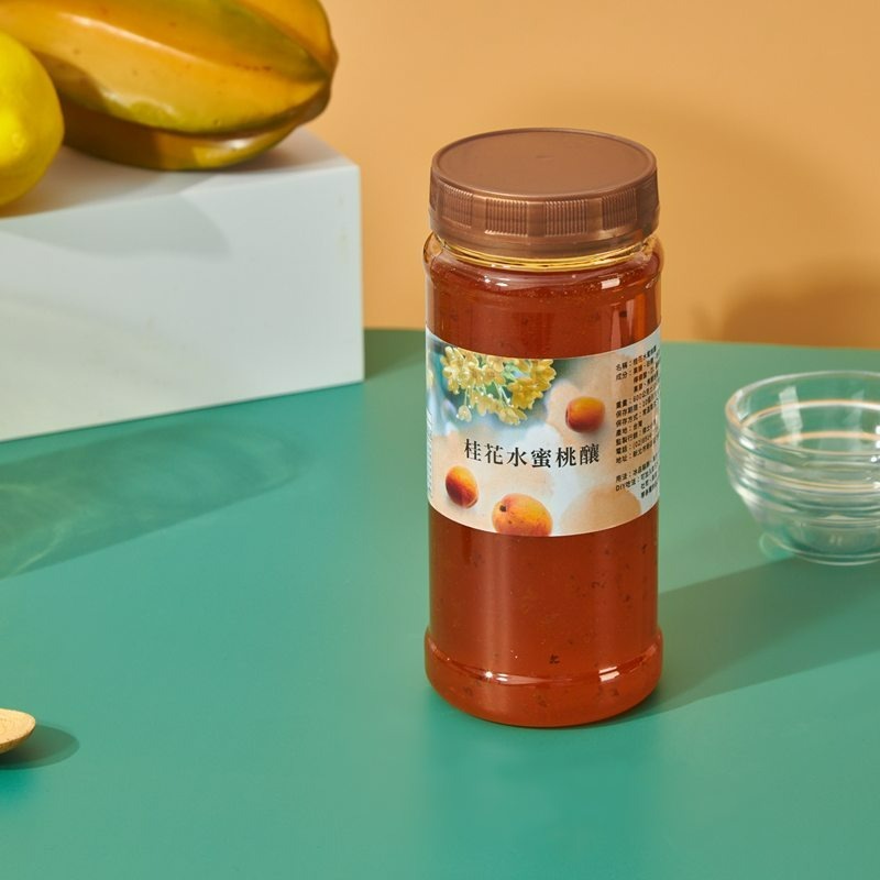 成分:果糖、砂糖、桂花、水、水蜜桃濃縮汁、檸檬酸、DL-蘋果酸、玉米糖膠、香料、果膠、焦糖色素