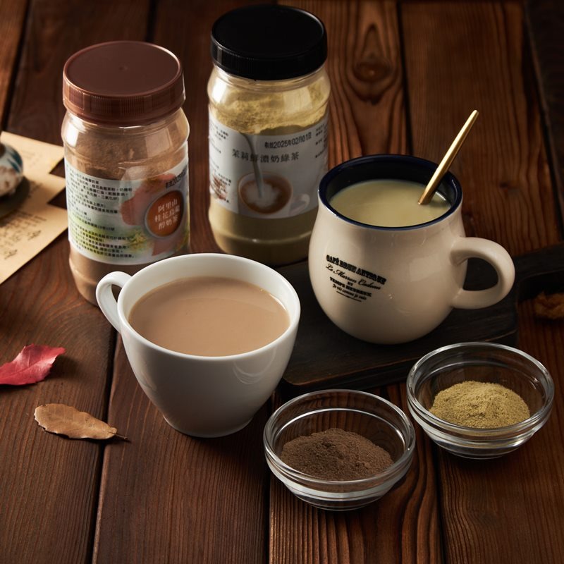糖粉、全脂奶粉、茉莉綠茶粉、奶精粉(葡萄糖漿、氫化棕櫚仁油、乾酪素鈉、磷酸氫二鉀、乳化劑、二氧化矽)