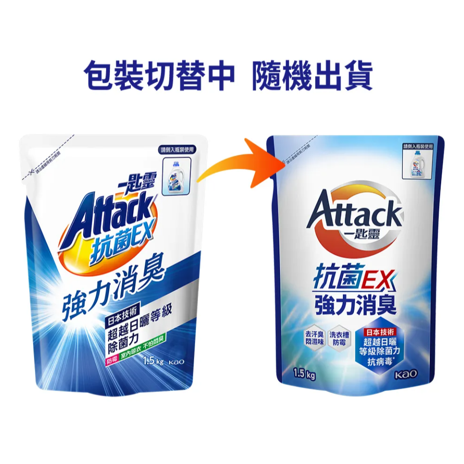 Attack 一匙靈 抗菌EX強力消臭洗衣精補充包 1.5kg(包裝隨機)