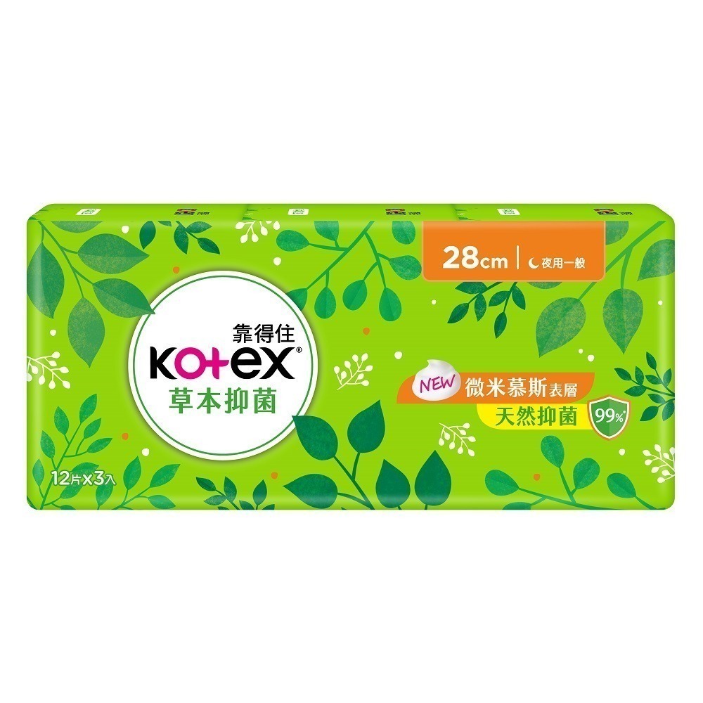 Kotex 靠得住 草本抑菌夜用一般衛生棉 28cm12片x3入