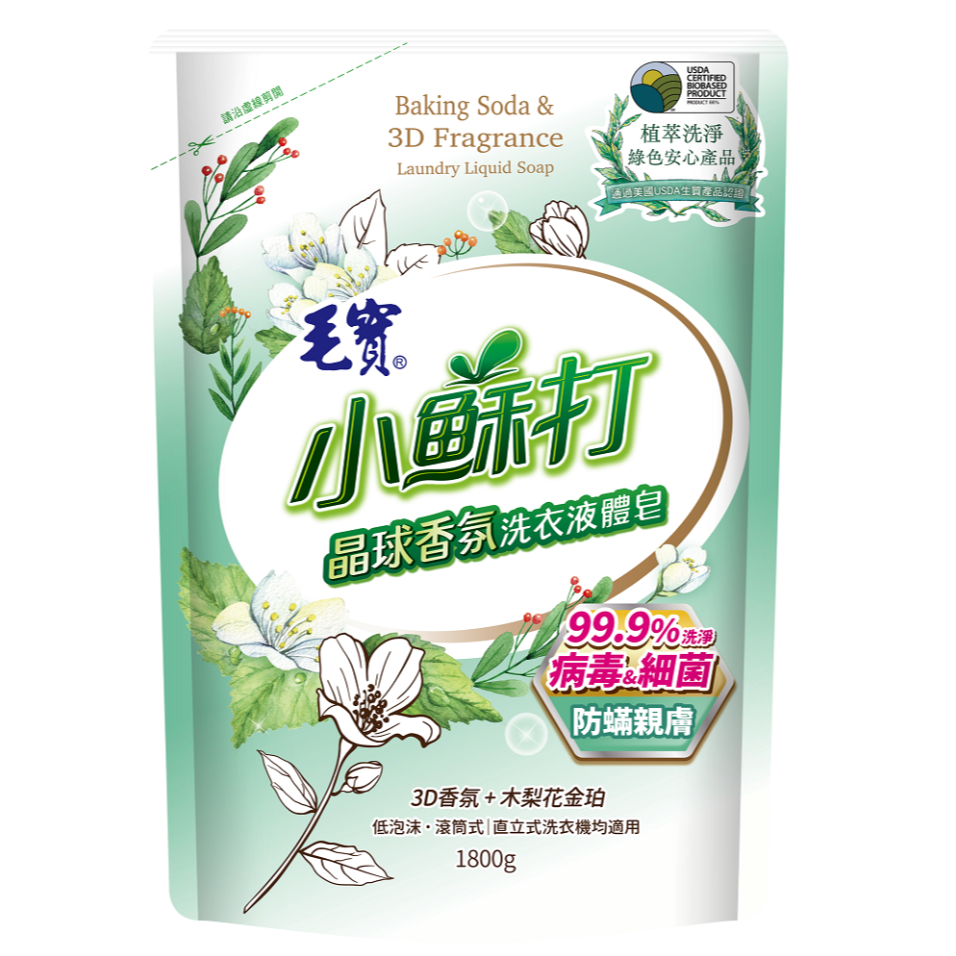 毛寶 小蘇打晶球香氛 洗衣液體皂 1800g 防蟎親膚