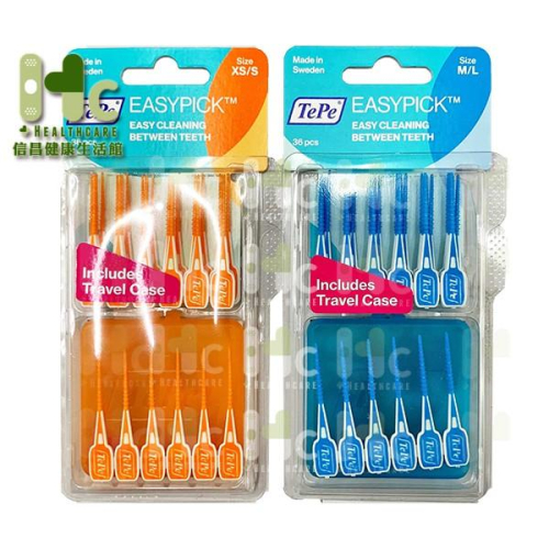 TEPE EasyPick輕鬆剔 ❤台灣總代理 正品公司貨 中文標籤 ❤榮獲2016年紅點設計大獎 ❤兩種尺寸選擇,防滑握柄設計,彈性矽膠設計 ❤附外出攜帶盒,攜帶便利,方便在外餐後清潔牙縫 由於本產品為專業醫療個人衛生用品非一般商品,基於衛生安全考量,若非商品本身瑕疵,售出後無論有無拆封與否,概不接受任何退換貨之需求唷~ 訂購前請仔細考慮,避免不必要的誤會,感謝您的配合。 產品產地: l 瑞典製造 。 產品規格: l XS/S(36入+外出攜帶盒1):牙間刷尺寸約0.4-0.5 mm l M/L(36入+外出攜帶盒1):牙間刷尺寸約0.6-0.8 mm 注意事項: l 請視個人牙齦狀況使用,勉強塞入可能造成牙齦傷害。 依《政府法令規章》,產品說明、效果及成份敘述等相關問題,請直接洽詢原廠。 #EasyPick #輕鬆剔 #TEPE #瑞典製造 #信昌健康生活館 #牙間刷