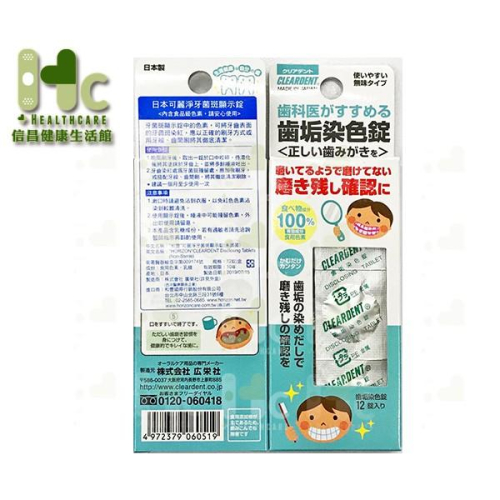 “和豐”可麗淨牙菌斑顯示錠(未滅菌) 12入裝 ~日本製造~ CLEARDENT