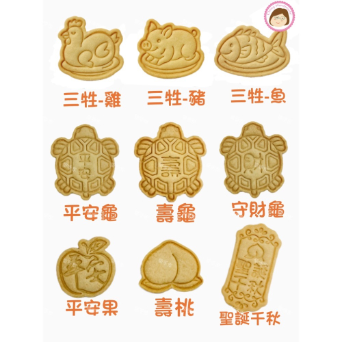 平安龜、守財龜、壽龜、壽桃、聖誕千秋、三牲拜拜手工餅乾