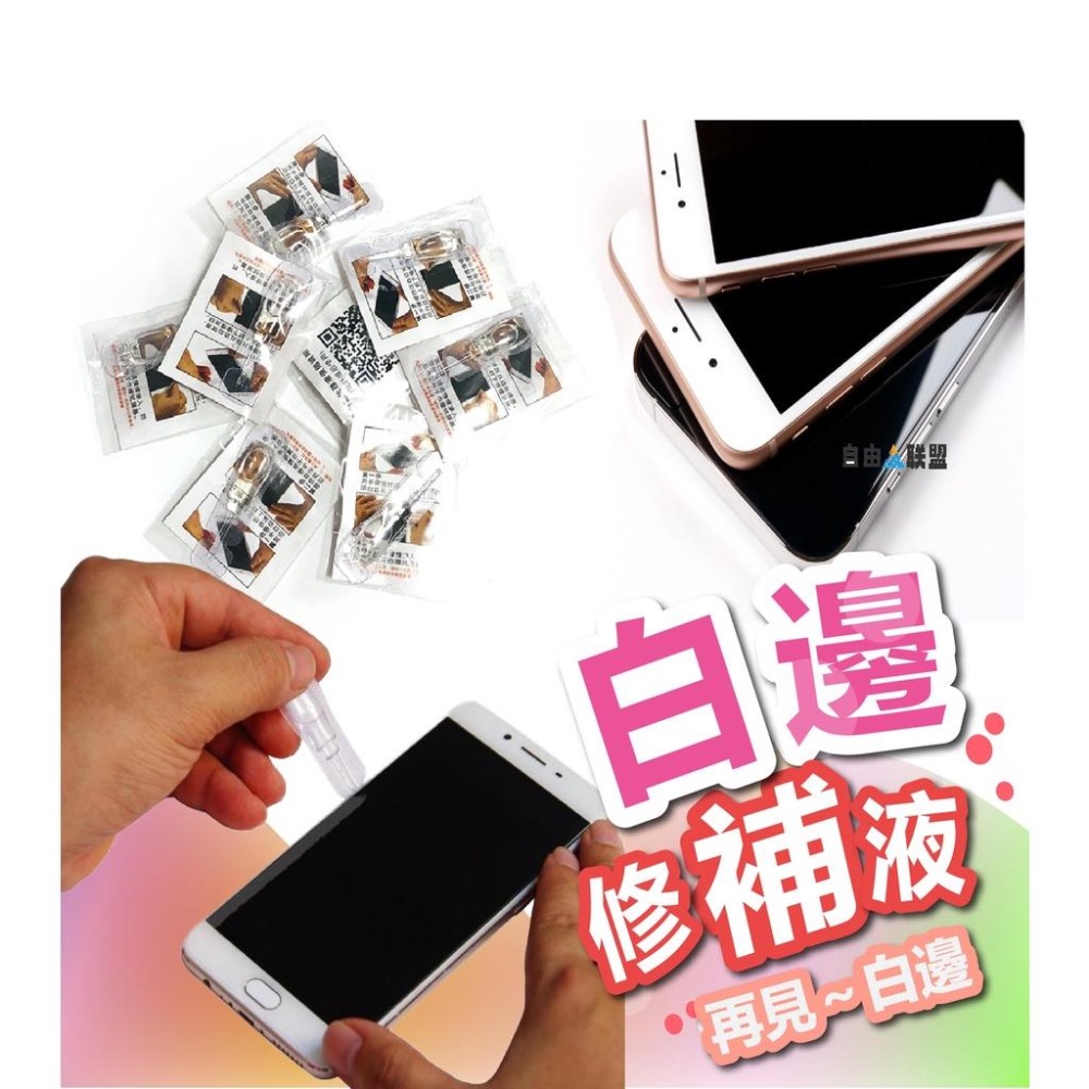 👉將白邊修復劑均勻塗在保護貼邊緣,並均勻推開 👉靜置一段時間,讓修復劑滲入縫隙,就可看到白邊逐漸消失