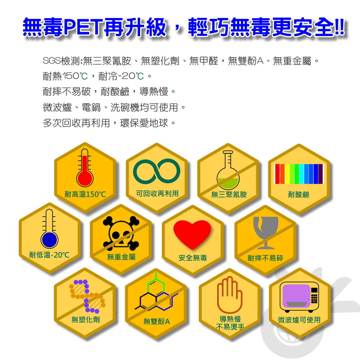 👍 PET材質導熱係數低,裝熱食不易燙手。