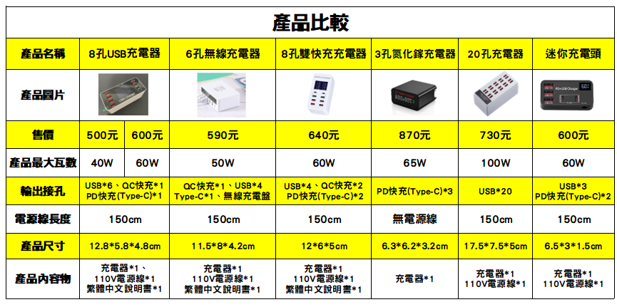 2.若充電瓦數最大為60W,若充電器極燙並且停止運作(螢幕變黑)代表超過60W,自動斷電了,以手機為例,使用快充是 20W(PD或QC皆一樣),其他孔為10W,所以如果同時充6台手機(不含快充,建議5台以下充電)或以上則有高機率會斷 電,下單前請注意自己的使用量,若因瓦數超高問題則不會給予退貨。 3.若打開產品後發現螢幕有刮痕為正常現象,上面有一層保護膜,下面的螢幕是完整的,請先確定產品沒有問題再把保 護膜撕掉。 🙏購買後發現問題或有任何瑕疵、變形等,麻煩私訊告知,我們一定會幫您處理,並且為您解決問題🙏