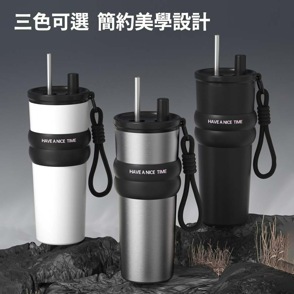 手提保溫杯 不銹鋼雙飲保溫杯 陶瓷咖啡杯 冰壩隨行杯 大容量710ML 保溫保冰外出杯 便攜隨身水杯