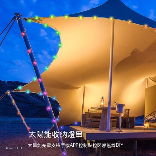 太陽能收納燈串|戶外帳篷燈 IP65防水 遠端控制 流光燈串 露營庭院裝飾燈 串聯可延長