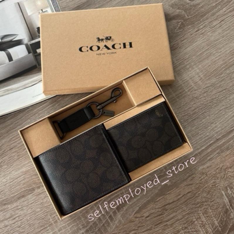 [S.E美國代購]COACH 男夾禮盒組 經典老花樣式 短夾 證件夾 名片夾 聖誕限定 送禮 禮物 限量