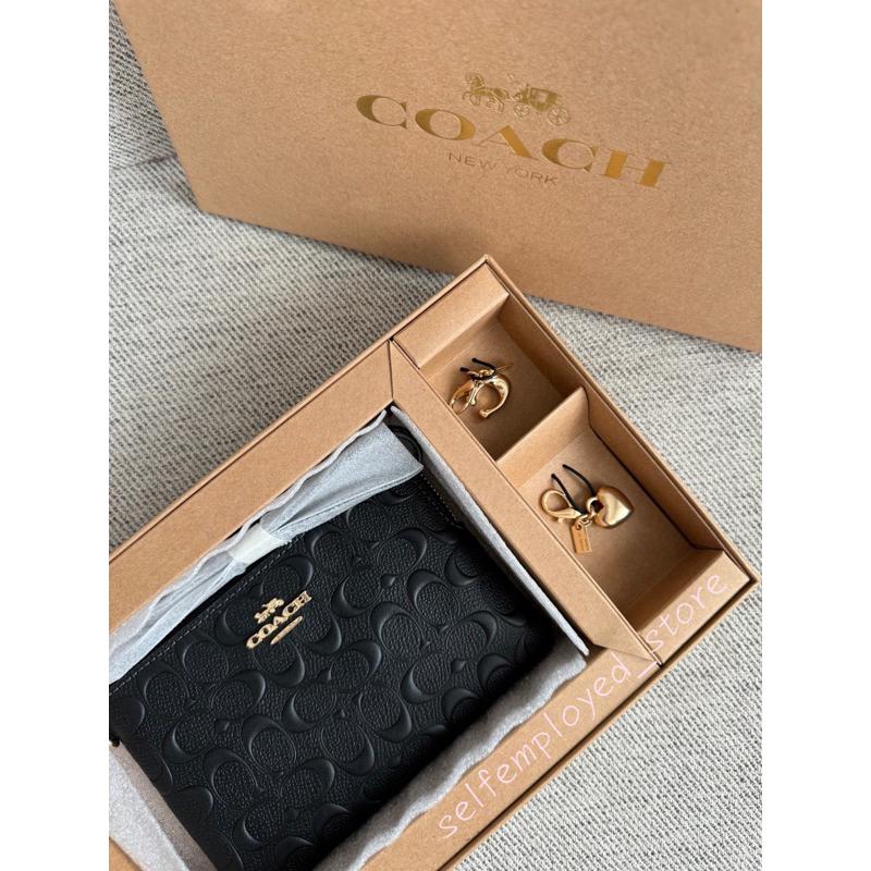 [S.E美國代購]Coach 單層手拿包禮盒組(經典浮雕黑) 附兩個吊飾 手拿包 零錢包 小包 限定 送禮專屬