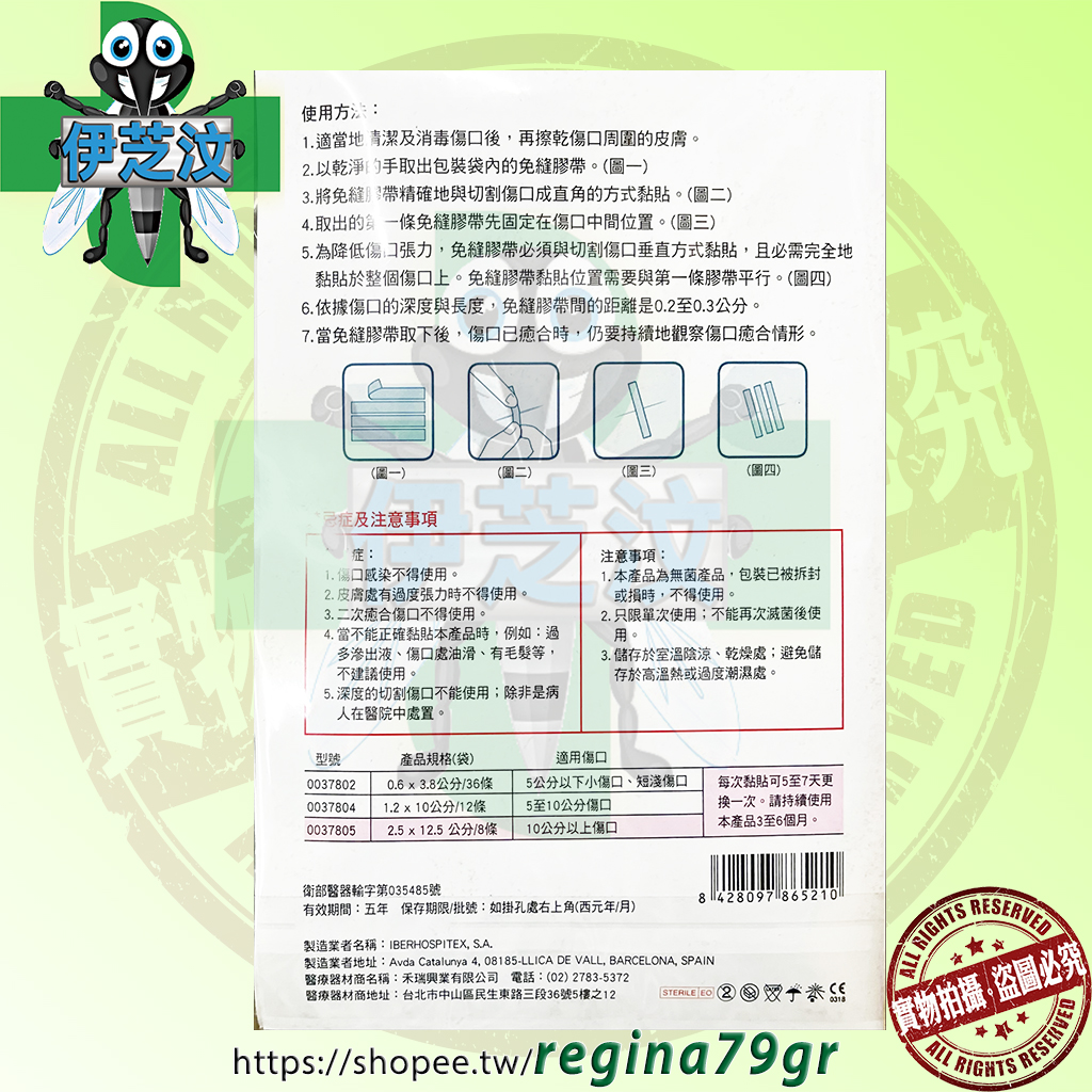 醫療器材許可證所載品名:"雅膚”免縫膠帶(滅菌)