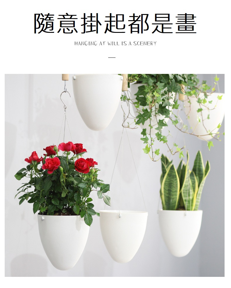 加厚鋼絲吊盆|塑膠花盆|純白磨砂吊盆懶人花盆