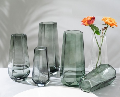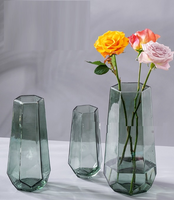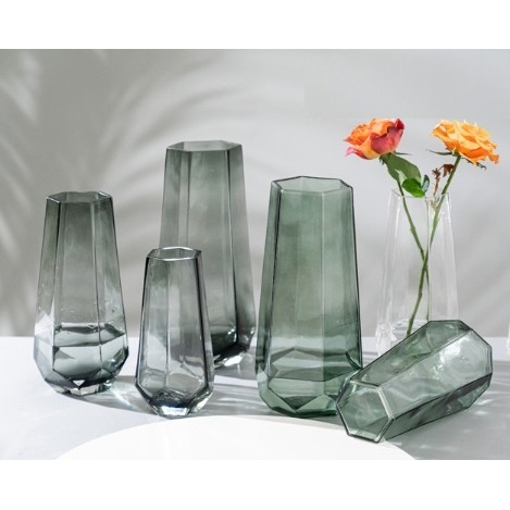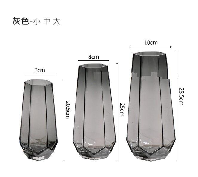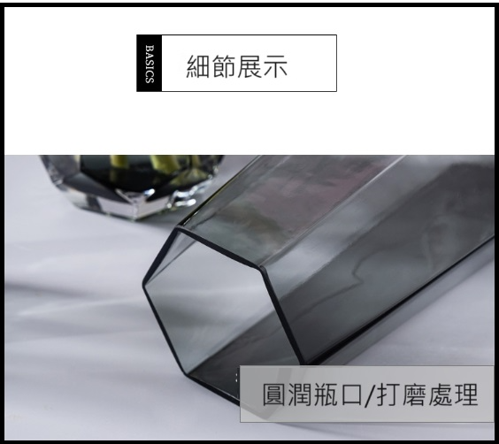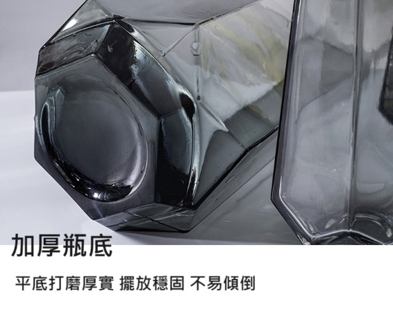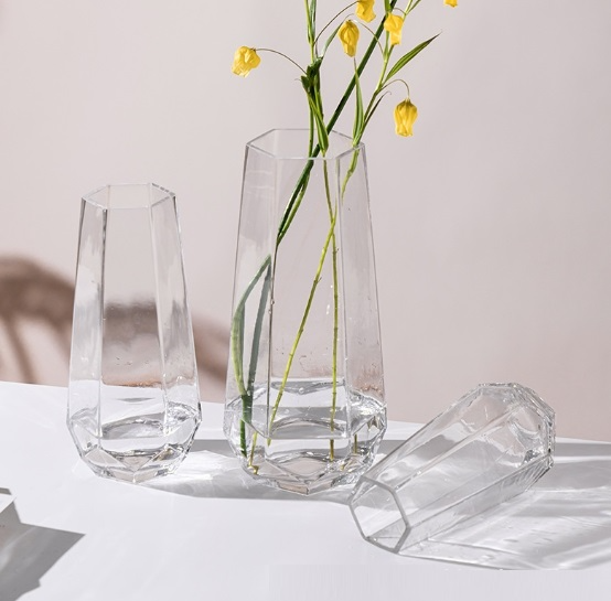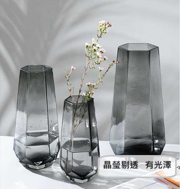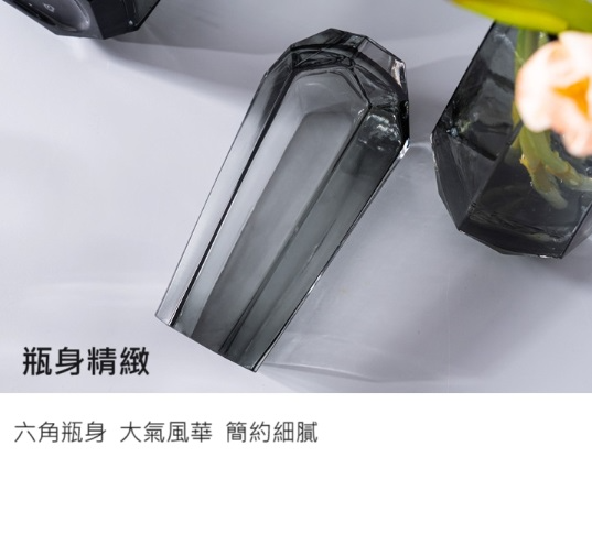 六邊收口玻璃花瓶 水培植物 鮮花 插花容器辦公室裝飾