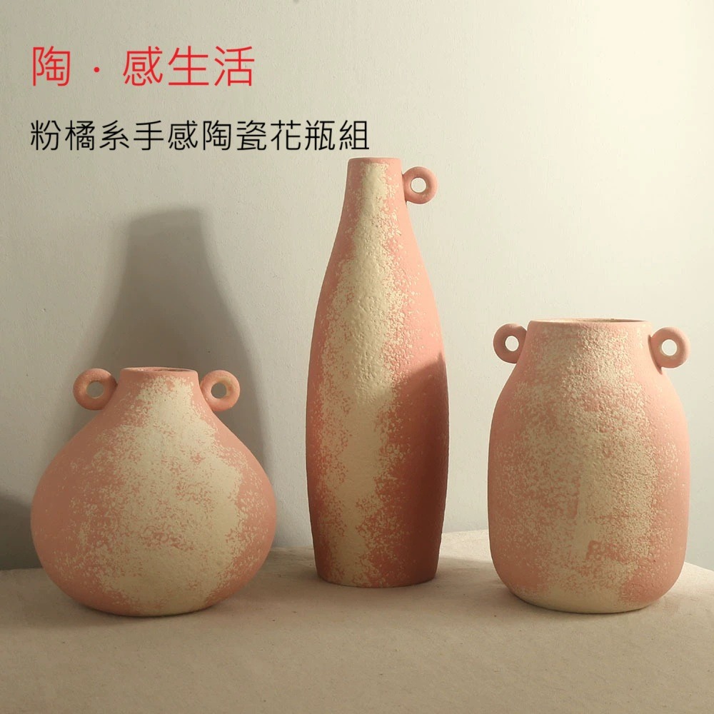 陶.感生活|粉橘系手感陶瓷花瓶組