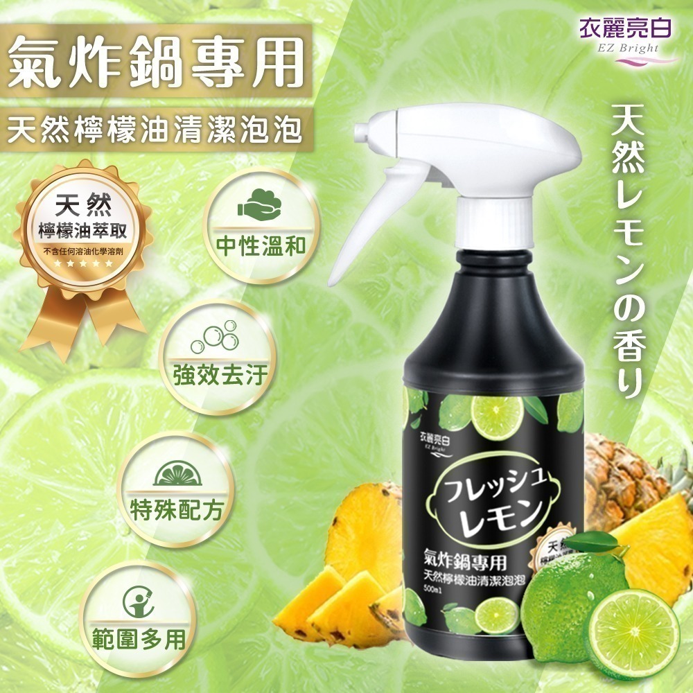 衣麗亮白 氣炸鍋天然檸檬油清潔泡泡 500ml 衣麗亮白 氣炸鍋泡泡 純天然 洗碗精 椰子油 檸檬油 清潔劑 除油劑
