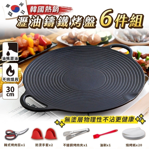 品名: 韓國熱銷瀝油鑄鐵烤盤6件組