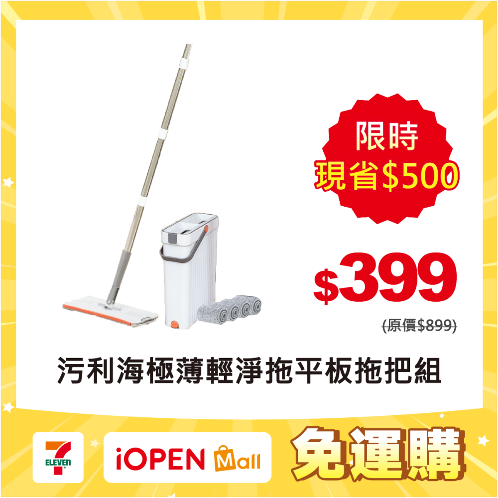 內容物:拖把桶x1、拖把桿x 1、拖把布x4、說明書x1