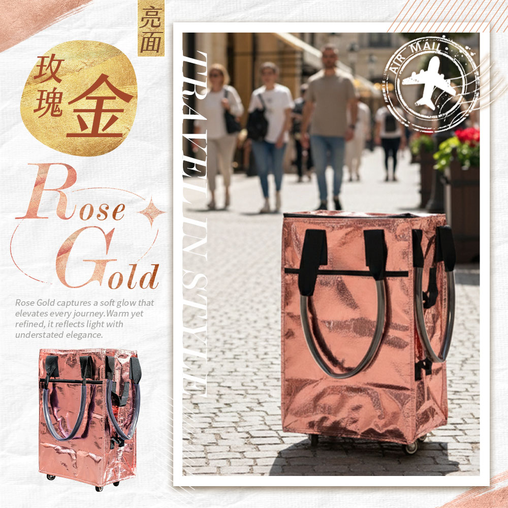 材質:亮面PP編織:袋身-聚丙烯(PP)、聚乙烯(PE)/底板-聚丙烯(PP)/輪子-橡膠、鐵
