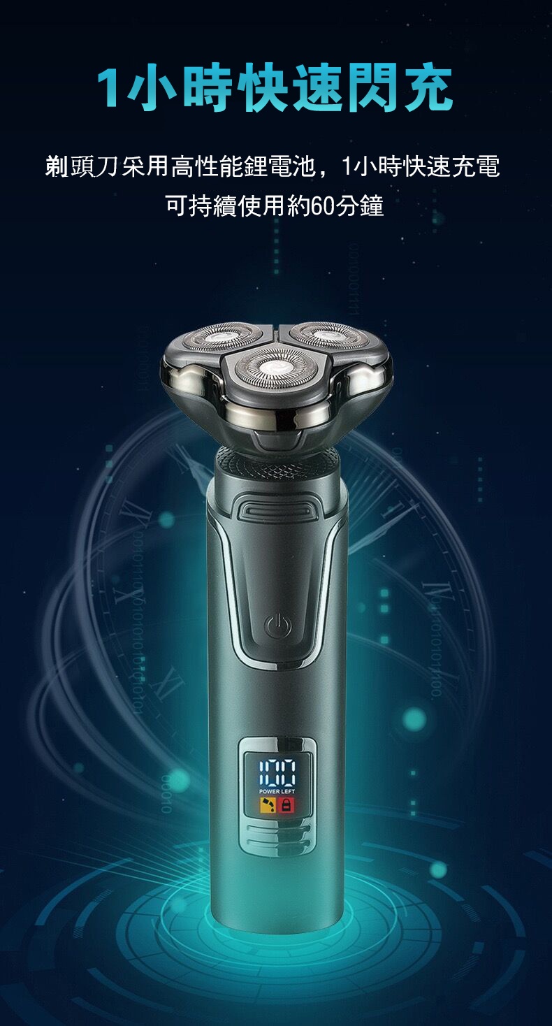 ☑三合一套裝:剃鬚刀+鼻毛刀+理發器。