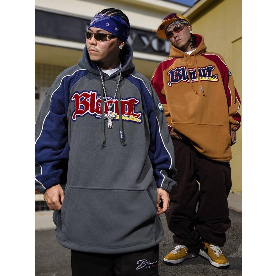 重磅拼接 撞色 刺繡 搖粒絨 長袖帽T