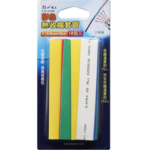 【現貨附發票】雙日 朝日電工 彩色熱收縮套管 10.0mm 10cm 10入 P-G5-0100K