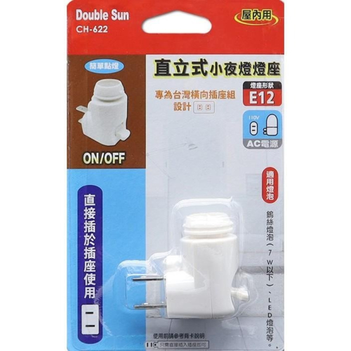 1.直立式插腳設計,專為台灣地區橫向插座解套之小夜燈燈座