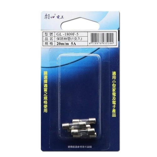【現貨附發票】雙日 朝日電工 20mm保險絲管 5A5入 GL-1809F-5