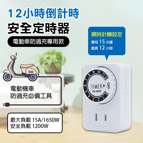 3. 12小時倒數計時,可任意設定倒數時間,時間一到自動關閉電源
