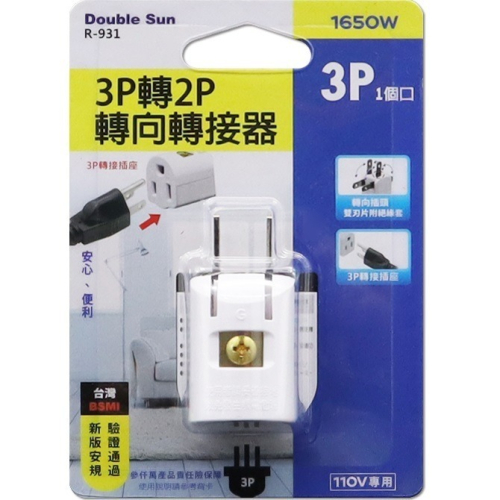 4.3P專用插座附接地螺絲,獨特3P轉2P轉接插座設計,3P插頭可直接插用,不需另外轉接