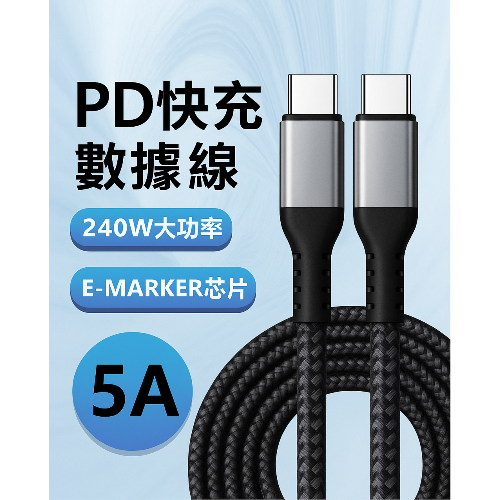 PD快充線 Type-C快充線| 240W/100W 5A高速傳輸數據線| 內置E-MARK晶片 筆電手機通用 |充電線