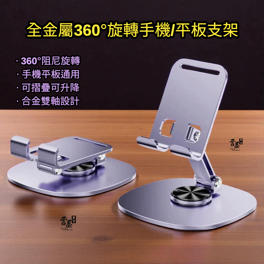 💎全金屬 360° 旋轉手機/平板支架|可升降可折疊 雙軸設計