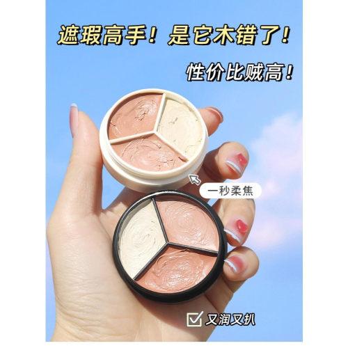 台灣發貨~三色遮瑕盤 3色遮瑕膏 遮蓋斑點 痘痘 痘印遮瑕膏 遮黑眼圈 隱形毛孔 遮瑕盤 修容