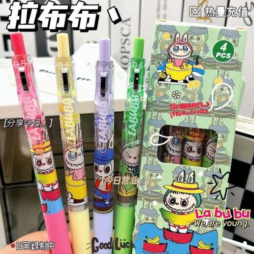 現貨寄出🎀 拉布布透明筆桿 🎀中性筆0.5mm 原子筆 一盒4入 黑筆 按動筆 可愛文具 按動原子筆