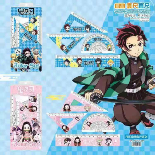 台灣現貨 鬼滅量角器四件套 鬼滅之刃 量角器 直尺套尺四件套 三角板 學習 文具