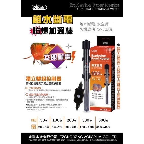 ⭕️品名:ISTA伊士達 – 離水斷電防爆加溫棒 50/100/200/300/500 瓦。