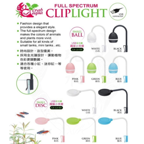 ⭕️品名: 小螃蟹 – USB全光譜小夾燈 ( 圓球、圓盤 )。