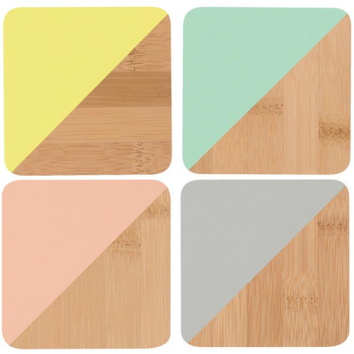 《danica》竹製雙色杯墊4入(黃綠粉灰)