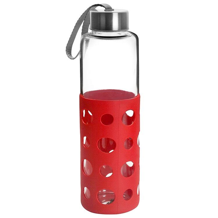 《ibili》Lake矽膠套玻璃水壺(紅550ml) | 水壺 冷水瓶 隨行杯 環保杯