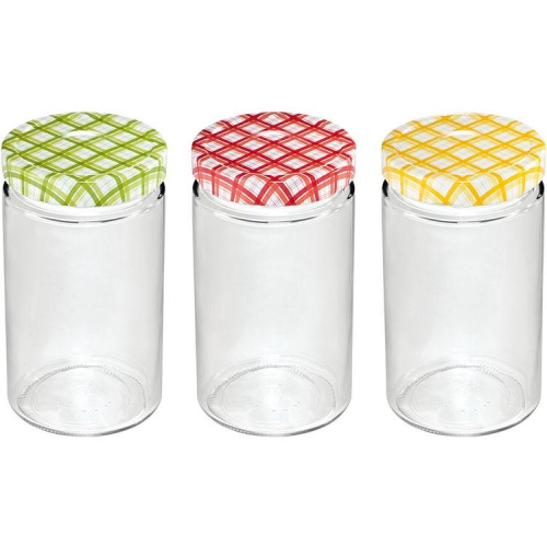 《tescoma》格紋玻璃密封罐3入(700ml) | 保鮮罐 咖啡罐 收納罐 零食罐 儲物罐