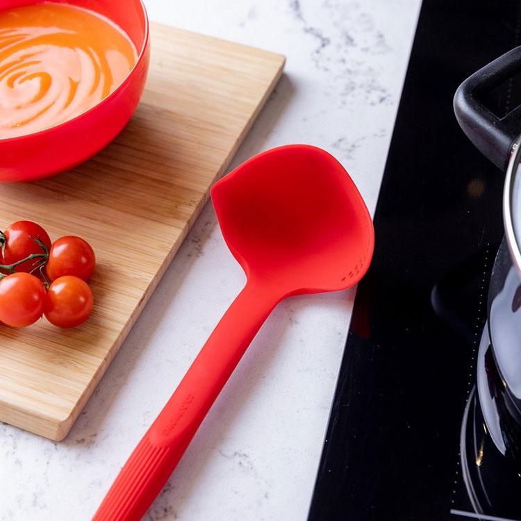 《Colourworks》2in1矽膠湯杓(紅28cm) | 料理匙 攪拌杓 攪拌勺 湯匙